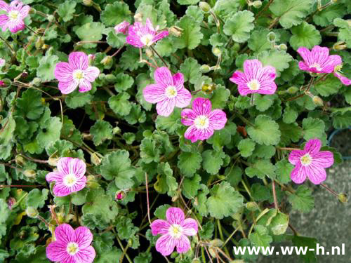 Synoniem:Nederlandse naam:Erodium reichardii plena Reigersbek . . Hoogte:5 cm Bloeikleur:Roze Bloeitijd:Juni - September Standplaats:Zon... |